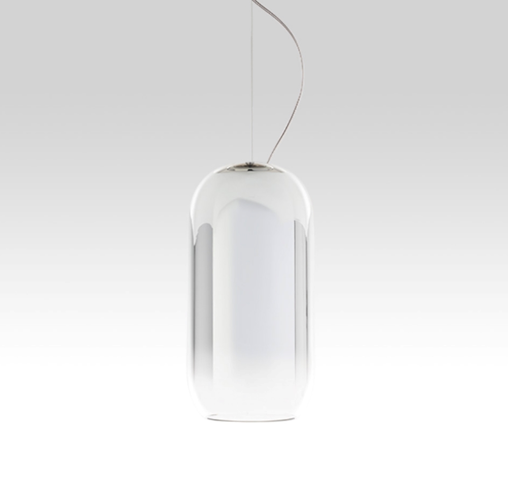 De basisvorm van de Gople-lamp benadrukt de schoonheid van het glas, dat met de hand is vervaardigd volgens een oude Venetiaanse techniek. Hier wordt wit glas omgezet in kristalglas door beide te combineren tijdens het blazen - hierdoor is elk glas uniek.