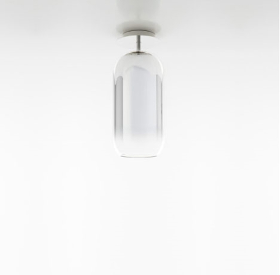 Artemide Gople Mini plafondlamp, zilver met zilverkleurige plafondbevestiging - ontworpen door BIG.
