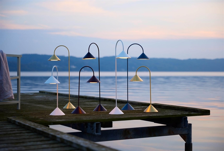 De Grasp-serie bestaat uit oplaadbare lampen met verschillende afwerkingen. Er zijn tuinlampen met spies en wandlampen, evenals de tafel-/vloerlampen Grasp Portable in twee maten in de serie.
