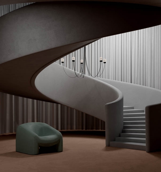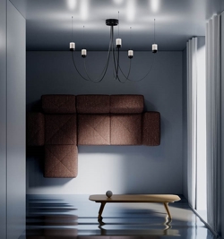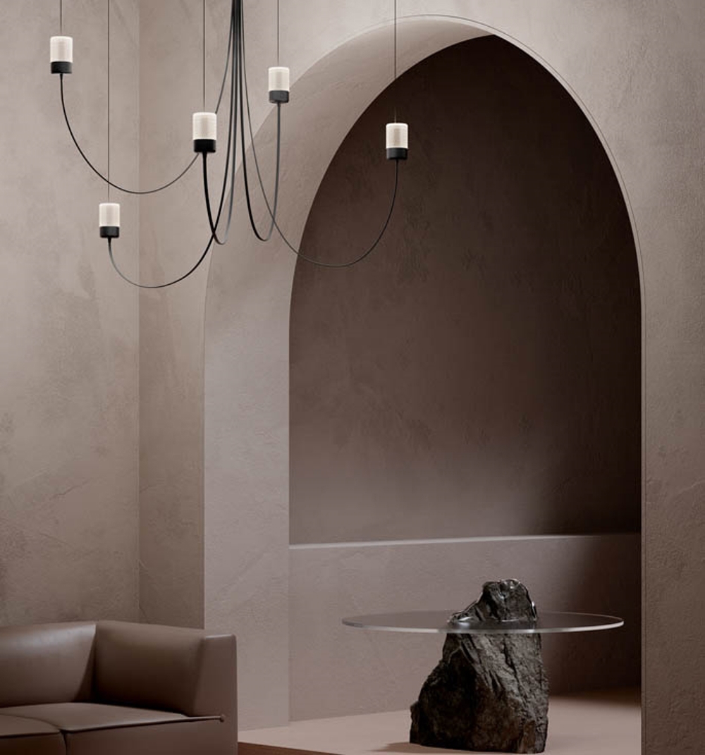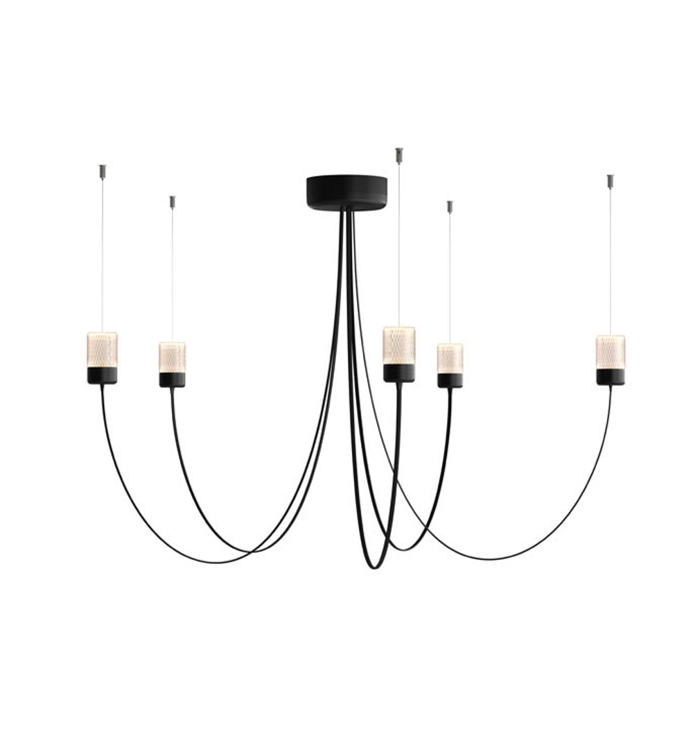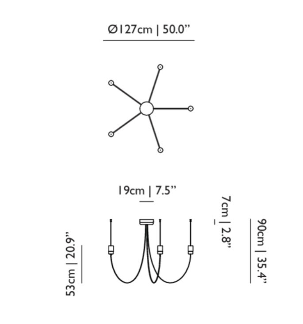 Op het eerste gezicht zie je de flexibiliteit van de Gravity lamp niet; met de flexibele armen van de kroonluchter bepaal je zelf de diameter, en daarmee hoe het licht door de ruimte beweegt.