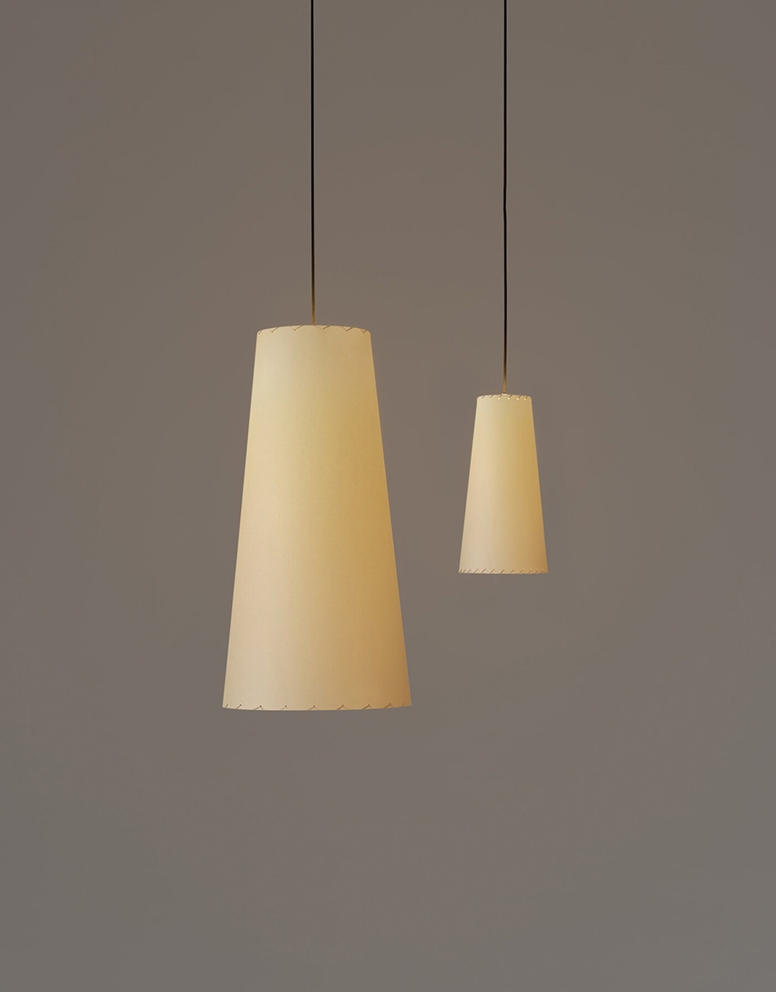 GT4 hanglamp met perkament kap, zwart snoer en zwarte plafondkap – ontworpen door Gabriel Ordeig Cole (Oprichter van Santa & Cole)