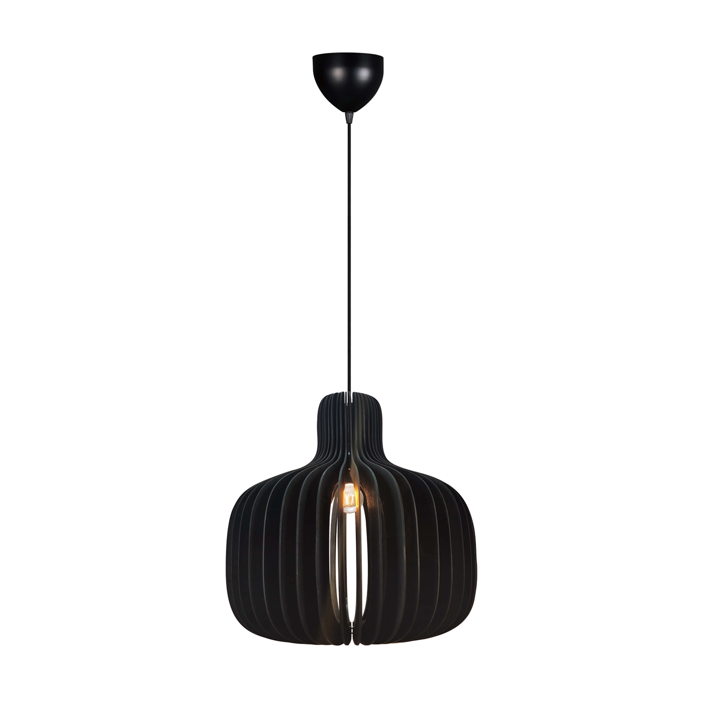 Hazo is een lichte hanglamp, waar de organische vormen naar voren komen met de elegante structuur in FSC-gecertificeerd hout. Een licht ontwerp in de lamp helpt om een decoratief licht in de ruimte te verspreiden, waar het samenspel van licht en schaduw wordt ervaren. Gebruik eventueel een decoratieve lamp om een andere uitstraling in de lamp te bereiken.