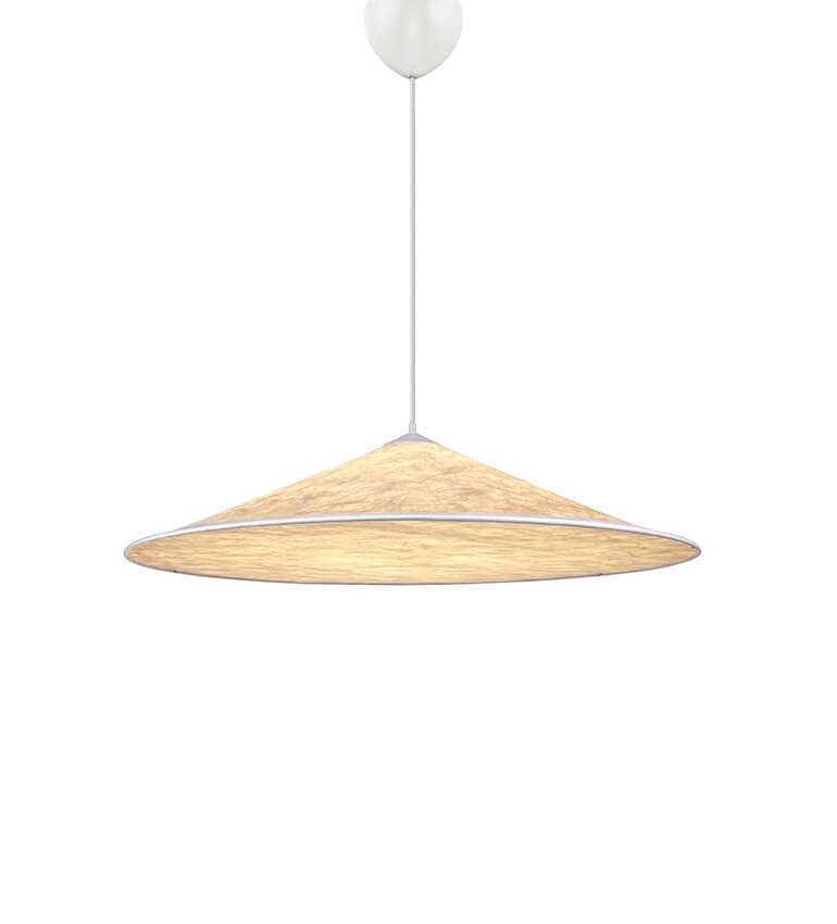 Hill hanglamp heeft een modern Japans design dat een zacht en diffuus licht geeft. Het licht is gelijkmatig en rustig in de ruimte.