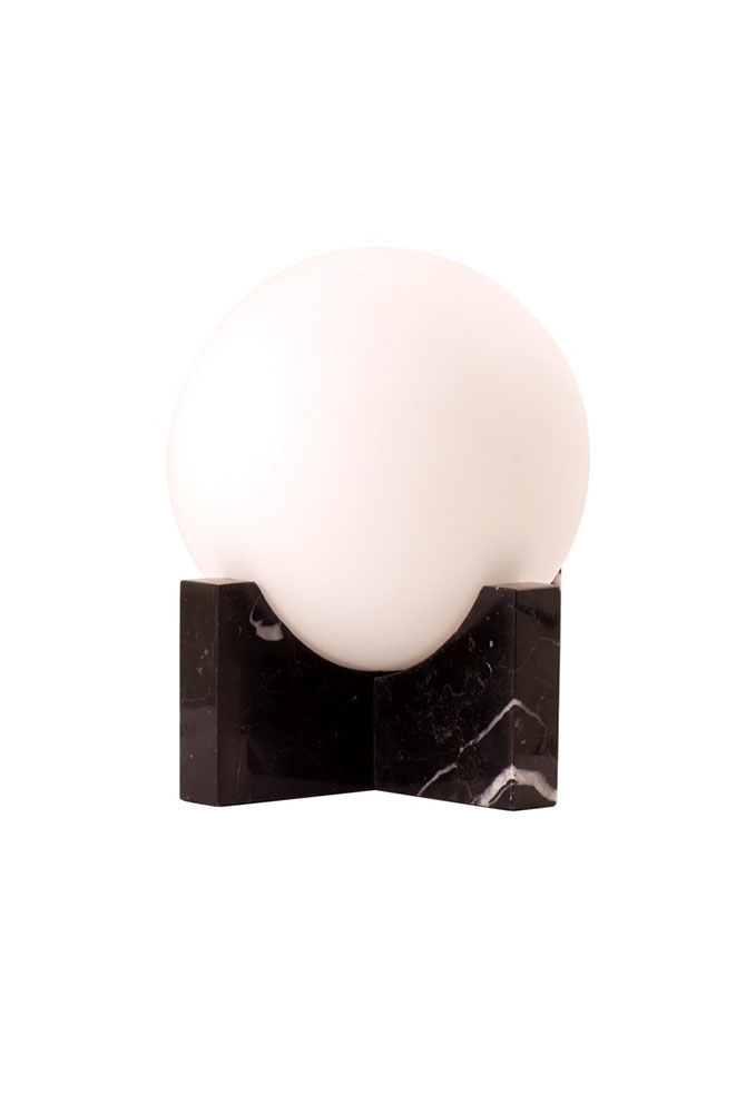 Frandsen Hito tafellamp/wandlamp, zwart marmer/wit opaalglas - ontworpen door Toni Rie