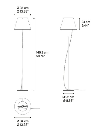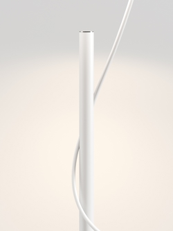 De Hover vloerlamp is ontworpen met een lampenkap die lijkt te zweven boven de lamp - alleen verbonden met een enkele kabel die door de stang loopt en aan de andere kant eruit komt. Dit geeft de lamp een lichte uitstraling.