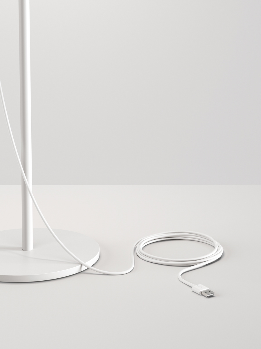 De ontwerper heeft zorgvuldig alle technische functies, die normaal aan de buitenkant van de lamp zitten, in de interne structuur van de lamp verwerkt. Bovendien wordt de stroomvoorziening geleverd in de vorm van een USB-kabel.