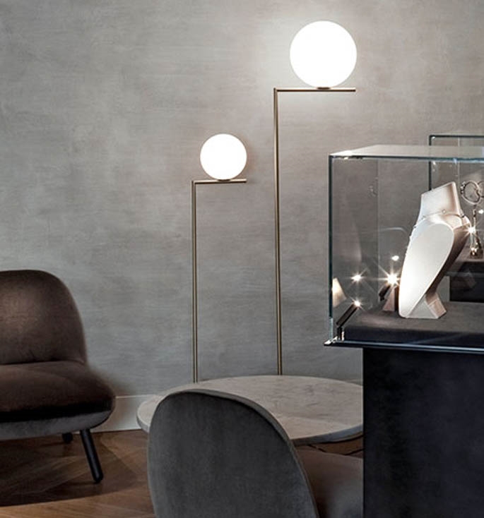 IC Light vloerlamp is verkrijgbaar in twee maten: F1 (hoogte 135 cm) en F2 (hoogte 185 cm).