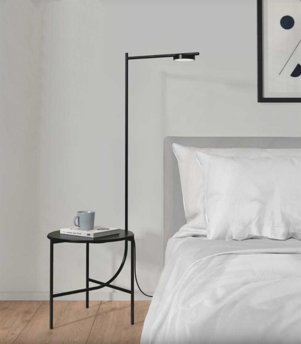 De Igram vloerlamp en tafel hebben een slim en uiterst functioneel ontwerp dat op veel verschillende plaatsen in huis en in hotels kan worden gebruikt.