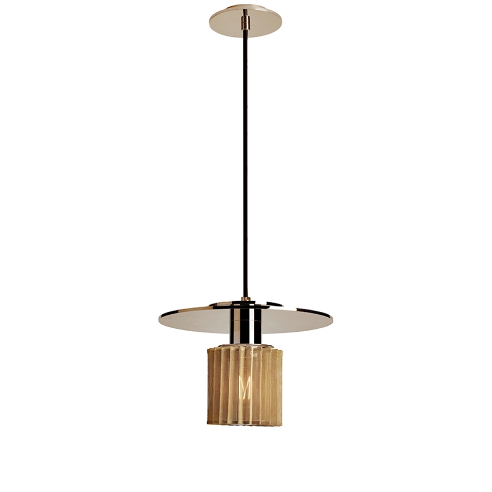 In The Sun 270 hanglamp, goud van DCW éditions – ontworpen door Dominique Perrault & Gaëlle Lauriot-Prévost.