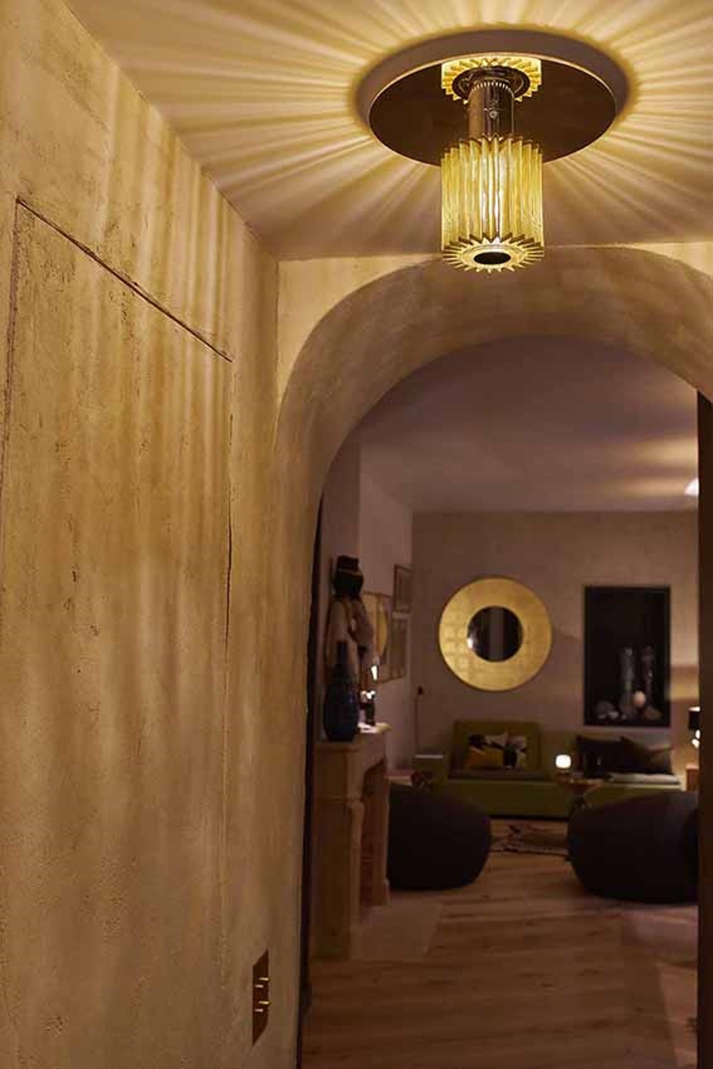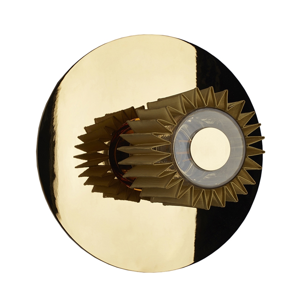 In The Sun 270 wandlamp/plafondlamp, goud van DCW éditions – ontworpen door Dominique Perrault & Gaëlle Lauriot-Prévost.
