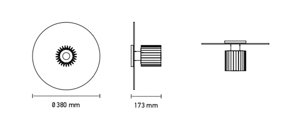 In The Sun 380 wandlamp/plafondlamp, goud/zilver van DCW éditions – ontworpen door Dominique Perrault & Gaëlle Lauriot-Prévost.