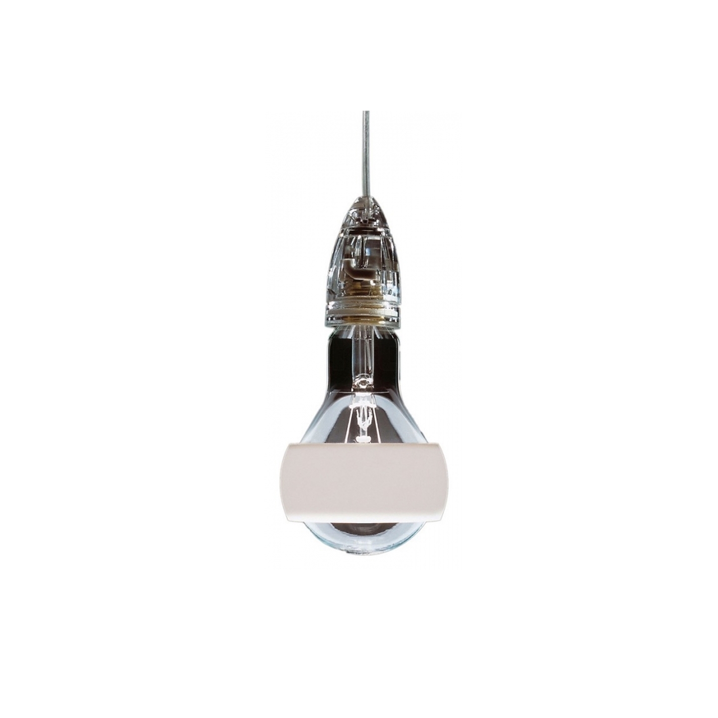 Ingo Maurer Johnny B. Good pendel is een in hoogte verstelbare hanglamp met speciale lamp, Ø10 cm, glazen fitting en een witte schermring gemaakt van hittebestendig PTFE, kunststof.