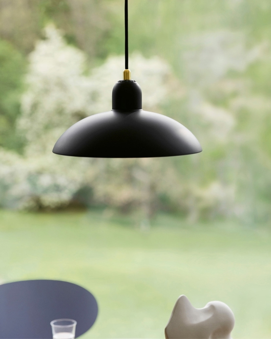 KAISER idell 6631-P hanglamp, mat zwart/messing - ontworpen door Christian Dell.