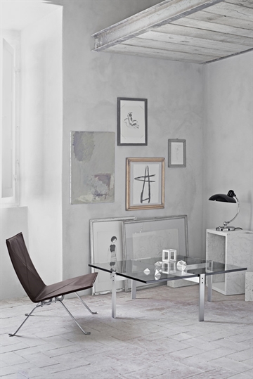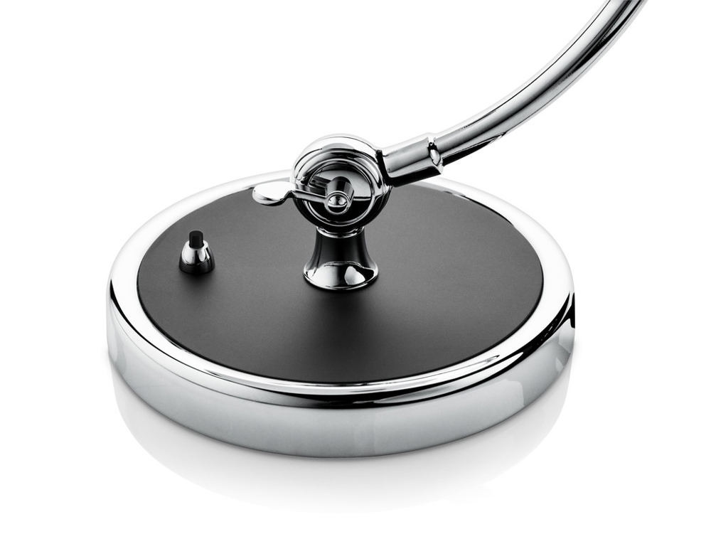 KAISER Idell 6631-T, is een stijlvolle, eenvoudige en elegante tafellamp in chroom en gelakt staal. De schakelaar is ingebouwd in de voet en de kap is volledig verstelbaar. KAISER Idell 6631-T is de perfecte keuze als leeslamp bij de fauteuil, bank of bed.