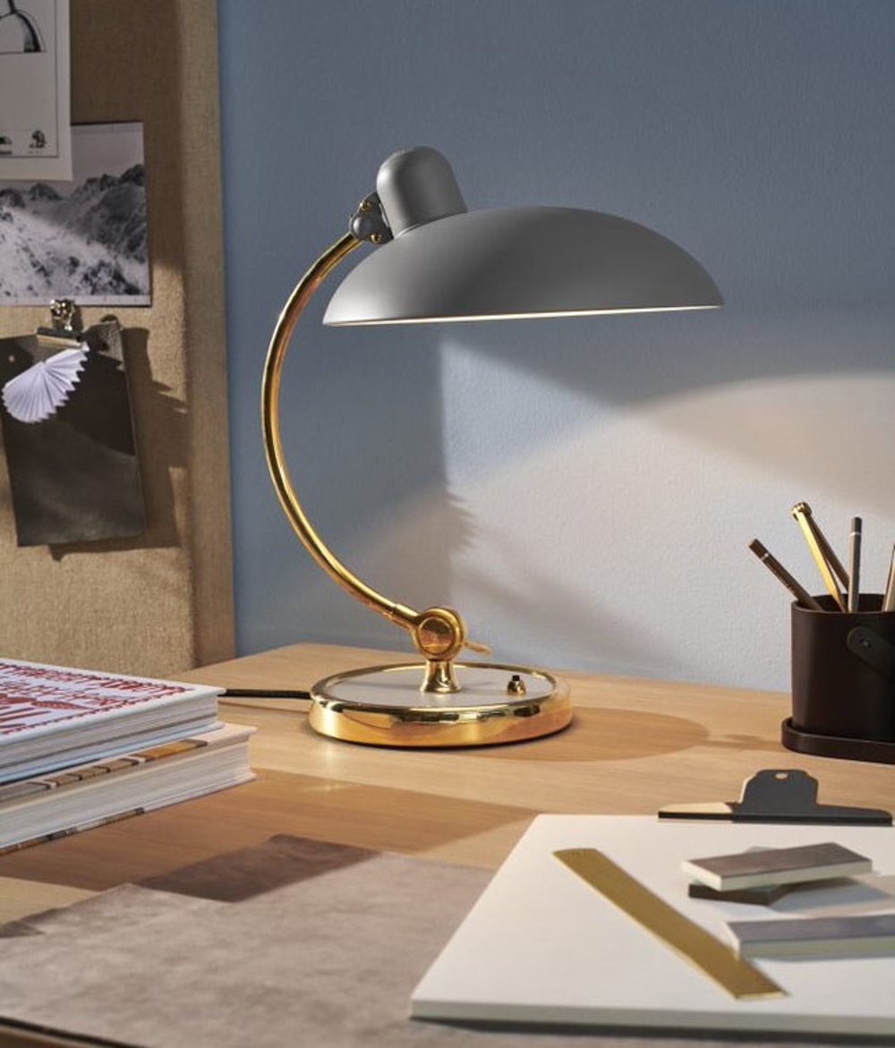 KAISER idell 6631-T Luxus tafellamp, easy grey/messing - ontworpen door Christian Dell
