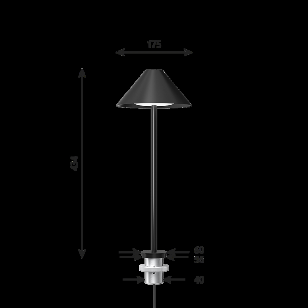 Keglen tafellamp m/stok, zwart