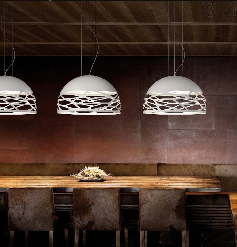 De lasersnijtechniek van de Kelly Dome lampenkap laat het licht stromen en creëert een prachtig spel in de ruimte. De hanglamp geeft een aangenaam licht en kan daarom goed boven de eettafel of in de woonkamer worden geplaatst.
