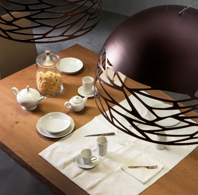 De lasersnijtechniek van de Kelly Dome lampenkap laat het licht doorstromen en creëert een prachtig lichtspel in de ruimte. De hanglamp geeft een aangenaam licht en kan daarom goed boven de eettafel, in de hal of in de woonkamer worden geplaatst.