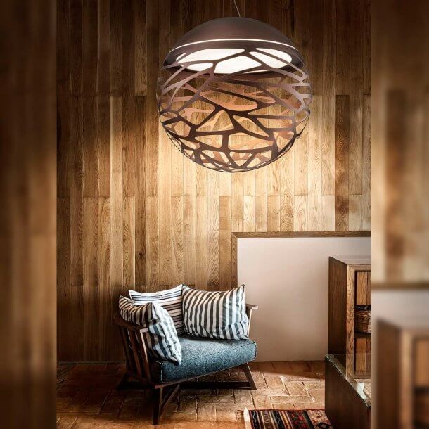 Kelly Sphere heeft een prachtig ontwerp met een lasersnijwerk kap, die een uniek licht en mooi spel in de ruimte geeft.