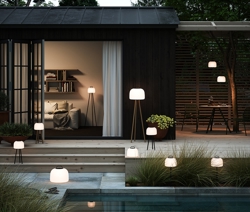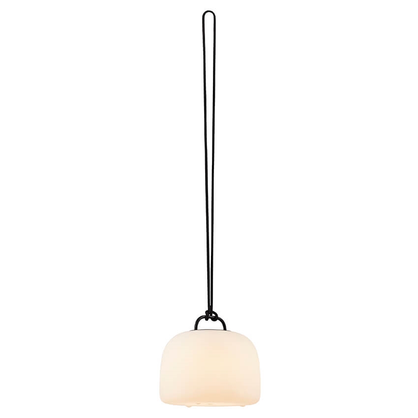 Kettle is een mooie batterijlamp waarbij functionaliteit hoog in het vaandel staat. Er wordt verwisselbare accessoires meegeleverd, zodat het mogelijk is om het type lamp te krijgen dat bij je behoeften past. Bij de lamp wordt een koord geleverd, zodat het mogelijk is om de batterijlamp in de tuin op te hangen voor een gezellige verlichting. Er zijn ook een spies of een driepoot beschikbaar, zodat de lamp kan functioneren als tafellamp of vloerlamp. Met de ronde en zachte vormen van de lamp geeft deze een rustige uitstraling, waarbij de diffuse kap een zacht licht verspreidt.