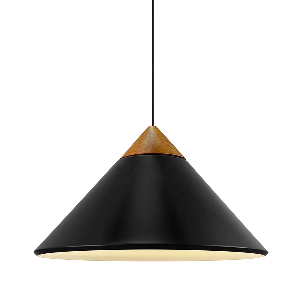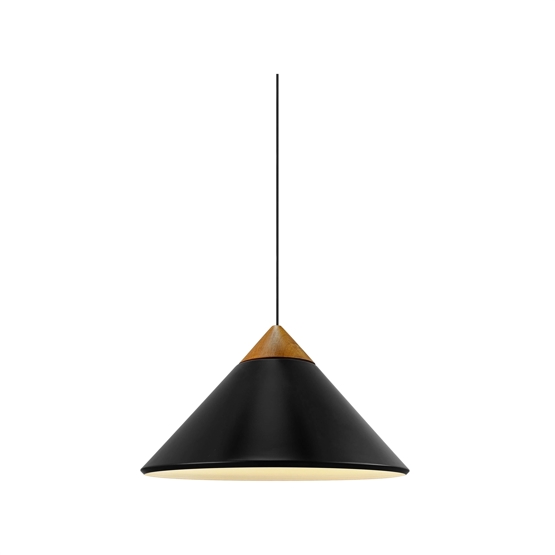 De hanglamp Kinto heeft een modern en minimalistisch ontwerp met een kegelvormige kap, die perfect boven de eettafel of keukentafel zal passen. Naast een functioneel neerwaarts licht, wordt het licht ook naar boven gestuurd door de opening aan de bovenkant van de kap, wat een prachtig lichteffect creëert. De hanglamp is van metaal met een elegante top van donker hout en details in gebronsd messing.