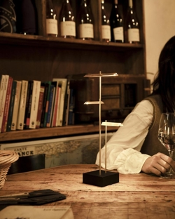 De oplaadbare batterijlamp Knokke is een elegante tafellamp met een magisch zacht licht dat sfeer en contrast creëert tussen licht en schaduw. Net als bij kaarslicht komen de verlichte vormen uit de duisternis tevoorschijn wanneer de lamp wordt ingeschakeld.