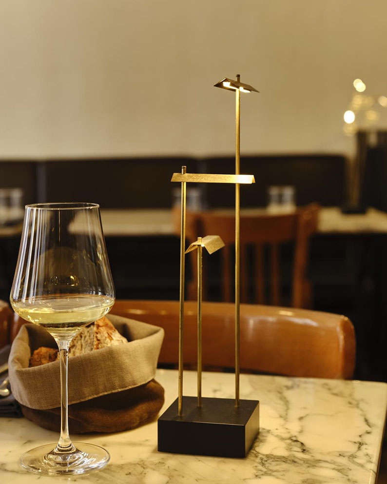 DCWéditions Knokke batterijlamp/tafellamp, geborsteld messing/zwart - ontworpen door Eric de Dormael