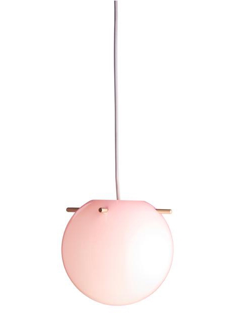 Frandsen Koi hanglamp Ø25, opaal roze met staven in messing - ontworpen door Jonas Birkebæk Poulsen
