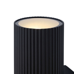 De elegante Kyklop Ripple Maxi buiten wandlamp is Deens design met een prachtige gegolfde afwerking in zwart aluminium. Een stijlvolle wandlamp met een moderne uitstraling, die goed zal passen in vele buitenomgevingen. Heeft zowel een opwaarts als neerwaarts licht, dat een mooi lichteffect op de muur creëert.