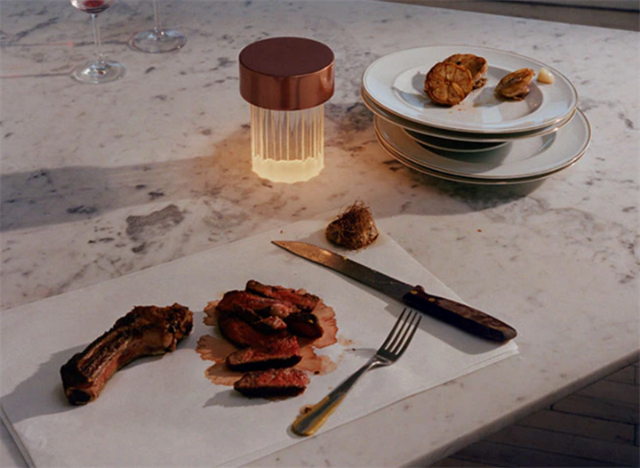 Flos Last Order batterijlamp / tafellamp geribbeld, satijn koper - ontworpen door Michael Anastassiades.