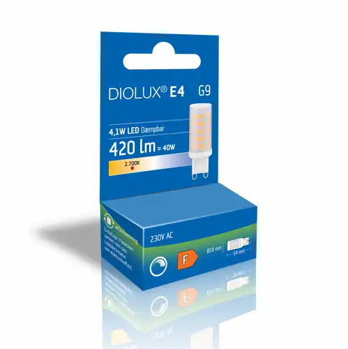 Diolux LED G9, C827, 420lm, 4,1W, dimbaar, 54x19mm