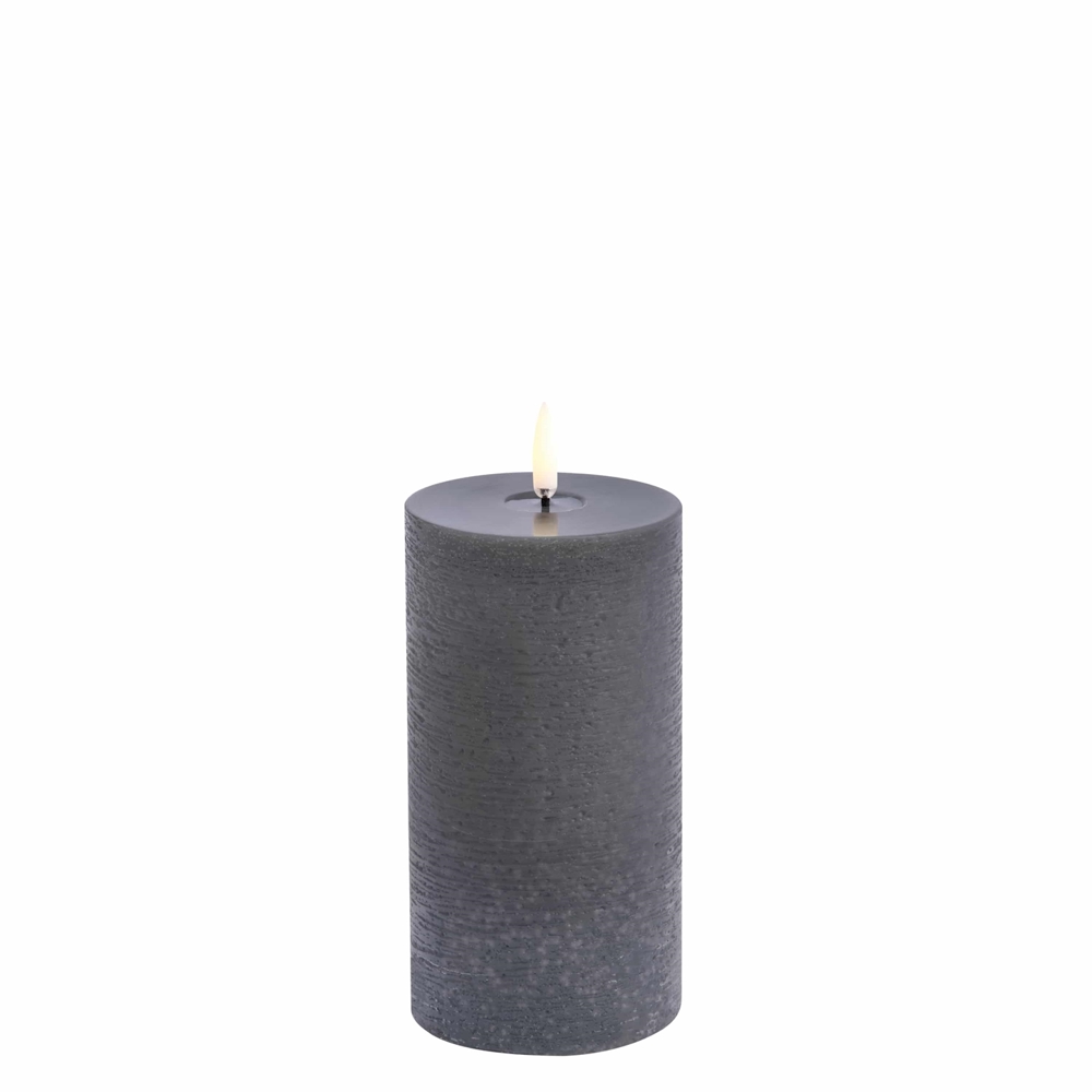 Uyuni LED Gesmolten pilaar kaars, Grijs, Rustic, Ø7,8 x H: 15 cm