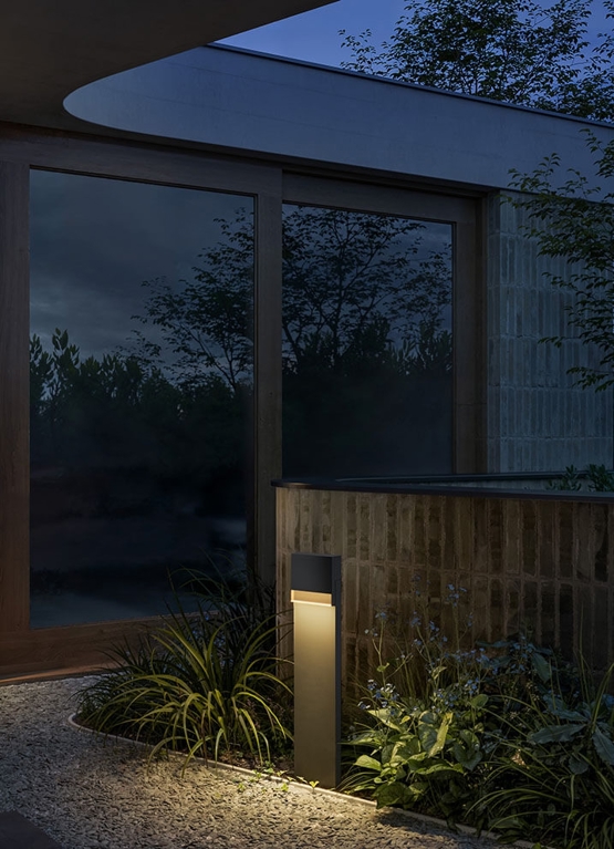 De buitenbolder Li.4 heeft een strak design in gegoten aluminium en is poedergecoat in de kleur antraciet met een frontstrip van rookglas. De bolder past met zijn discrete uitstraling goed bij entrees, opritten en andere buitenomgevingen. De elegante buitenlamp heeft een geïntegreerde reflector die het primaire licht in een verticale neerwaartse richting bundelt.