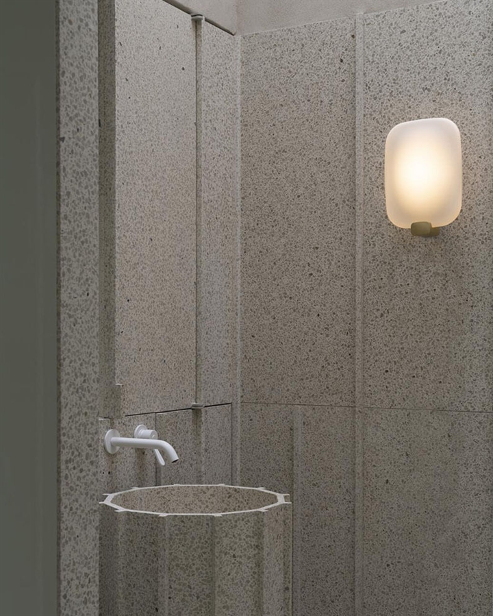 De lamp is oorspronkelijk ontworpen als badkamerlamp, maar kan ook prima in de hal of andere plekken in huis hangen.
