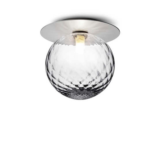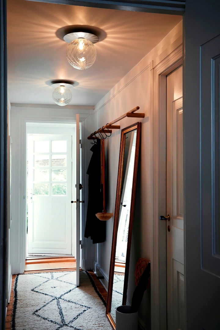 Liila 1 Large bestaat uit een fijne metalen plaat, die een mooi contrast biedt met het gestructureerde, mondgeblazen glas - en geeft de lamp een elegant uiterlijk. Liila 1 Large is ideaal voor kleinere ruimtes of bij een laag plafond. Het voldoet aan de behoefte aan licht zonder veel ruimte in te nemen.