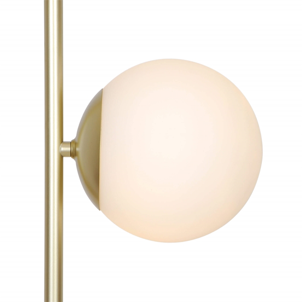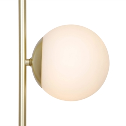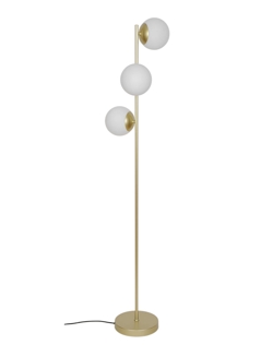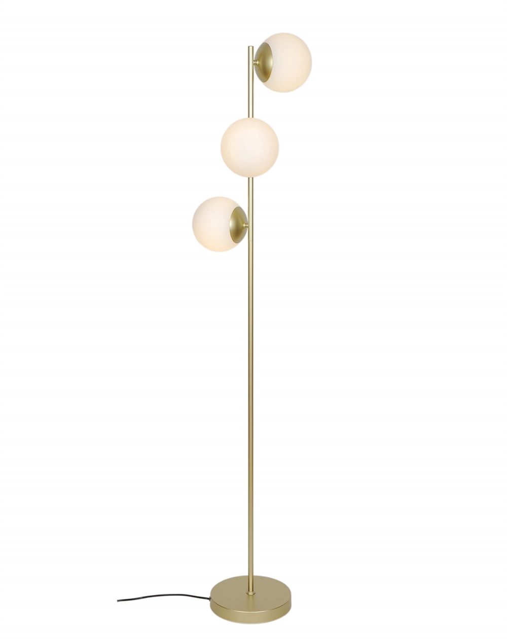 De vloerlamp Lilly met drie mondgeblazen bolvormige kappen van wit opaalglas verspreidt een zacht en aangenaam licht en creëert een warme sfeer in de woonkamer, slaapkamer of leeshoek. Het ontwerp combineert moderne minimalisme met verfijnde elegantie en heeft een metalen structuur met messing afwerking, die prachtig samengaat met de lichtgevende opaalwitte glazen bollen.