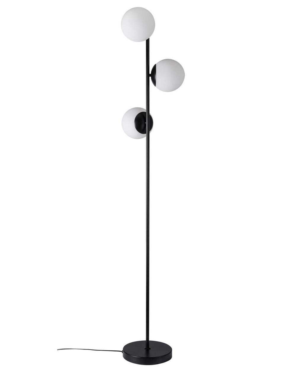 De vloerlamp Lilly met drie mondgeblazen bolvormige kappen van wit opaalglas verspreidt een zacht en aangenaam licht en creëert een warme sfeer in de woonkamer, slaapkamer of leeshoek. Het ontwerp combineert moderne minimalisme met verfijnde elegantie en heeft een metalen structuur met zwarte afwerking, die een mooi contrast vormt met de lichtgevende opaalwitte glazen bollen.