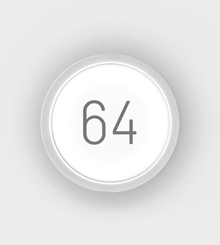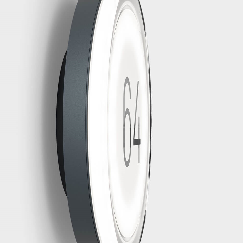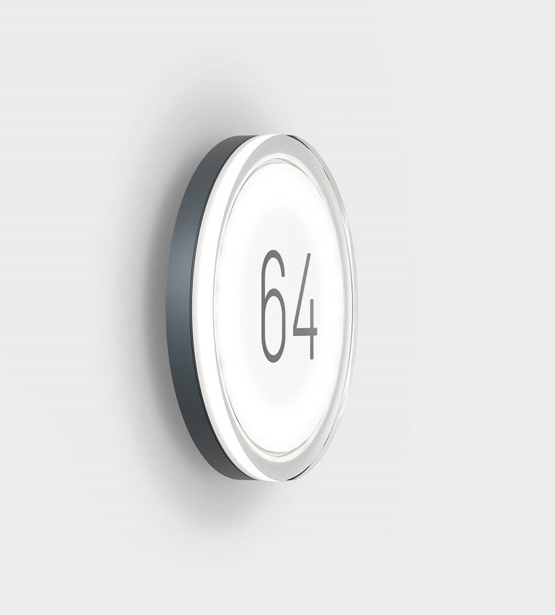 Lisc Number is verkrijgbaar in de kleuren antraciet en puur wit. De lamp wordt geleverd met het gewenste huisnummer in grijze folie. Het huisnummer kan tot drie cijfers bevatten en is gemakkelijk te lezen. Lisc is ook verkrijgbaar zonder huisnummer voor montage aan de wand of het plafond.