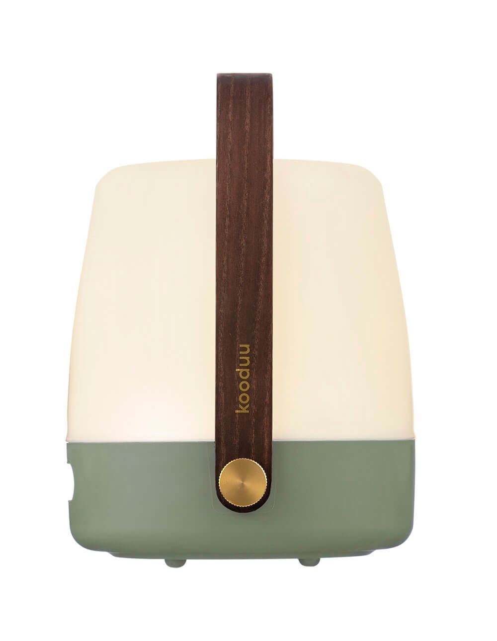 Kooduu lamp trekt de aandacht in elk interieur. Lite-up heeft een lichaam van wit PE met soft-touch. Het handvat is van donker hout.