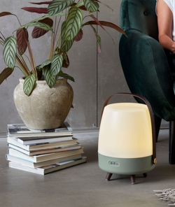 Lite-up Play is verkrijgbaar in verschillende kleuren - earth, petroleum, sand en ocean. De Lite-up-serie bestaat ook uit de kleinere speakerlamp Lite-Up Play Mini en de batterijlamp Lite-up, die alleen een LED-lamp is.