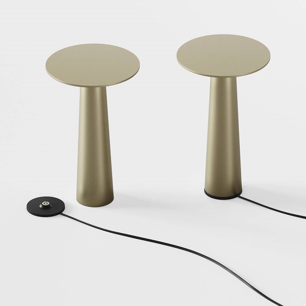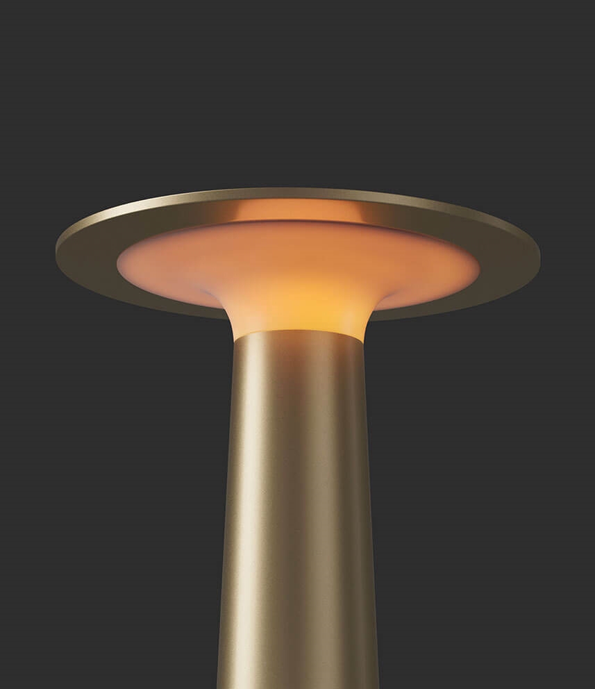 De populaire batterijlamp Lix met gouden afwerking is gemakkelijk mee te nemen en kan worden aangepast aan elke sfeer met een geïntegreerde LED-lichtbron die kan worden gedimd van warm wit op 2700K tot de gezellige gloed van kaarslicht op 1800K. De draagbare tafellamp kan, afhankelijk van de gekozen dimstand, tussen 5 en 48 uur branden voordat hij op de meegeleverde laadbasis moet worden geplaatst en opnieuw moet worden opgeladen.