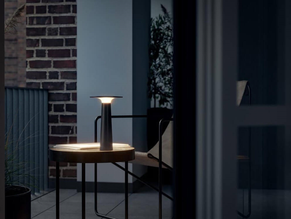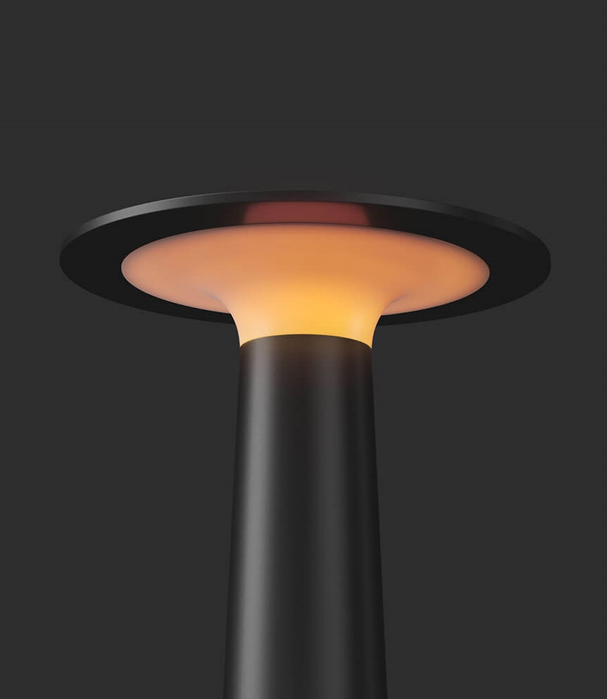 De populaire batterijlamp Lix in zwart is gemakkelijk mee te nemen en kan worden aangepast aan elke sfeer met een geïntegreerde LED-lichtbron die kan worden gedimd van warm wit op 2700K tot de gezellige gloed van kaarslicht op 1800K. De draagbare tafellamp kan, afhankelijk van de gekozen dimstand, tussen 5 en 48 uur branden voordat hij op de meegeleverde laadbasis moet worden geplaatst en opnieuw moet worden opgeladen.