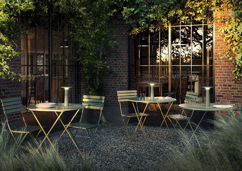 De tafellamp Lix is verkrijgbaar in verschillende afwerkingen, waarvan de meeste zijn ontworpen voor zowel binnen- als buitengebruik. De varianten in messing, chroom en donker chroom worden alleen voor binnengebruik aanbevolen. De serie omvat ook de kleinere variant Lix mini.