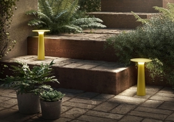 De populaire batterijlamp Lix in zongeel is gemakkelijk mee te nemen en kan worden aangepast aan elke sfeer met een geïntegreerde LED-lichtbron die kan worden gedimd van warm wit op 2700K tot de gezellige gloed van kaarslicht op 1800K. De draagbare tafellamp kan, afhankelijk van de gekozen dimstand, tussen 5 en 48 uur branden voordat hij op de meegeleverde laadbasis moet worden geplaatst en opnieuw moet worden opgeladen.