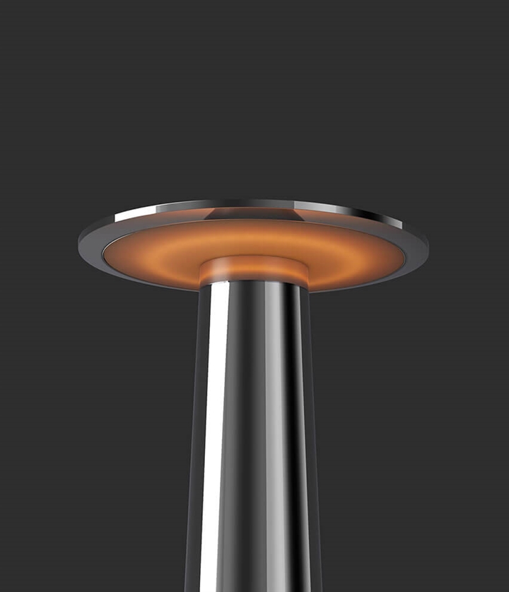 De batterijlamp Lix mini met chroom afwerking is gemakkelijk mee te nemen en kan worden aangepast aan elke sfeer met een geïntegreerde dimbare LED-lichtbron, die kan worden aangepast van warm wit op 2700K tot de gezellige gloed van kaarslicht op 1800K. De draagbare tafellamp kan, afhankelijk van de gekozen dimstand, tussen 5 en 48 uur branden voordat hij op de meegeleverde laadbasis moet worden geplaatst en opnieuw moet worden opgeladen.