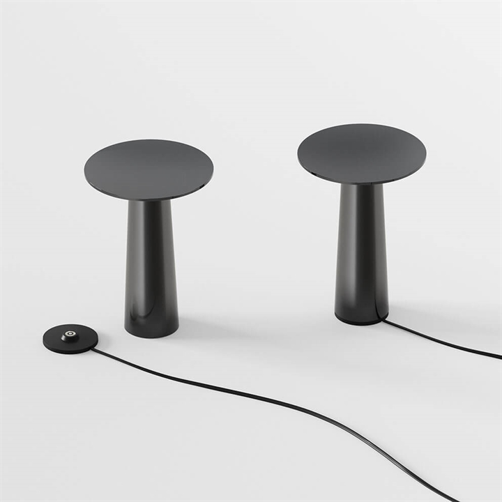 IP44.de Lix mini batterijlamp/tafellamp, dark chroom - ontworpen door Klaus Nolting