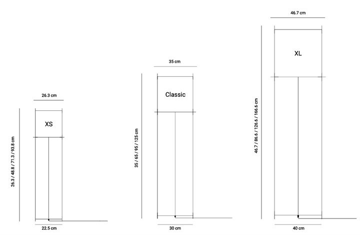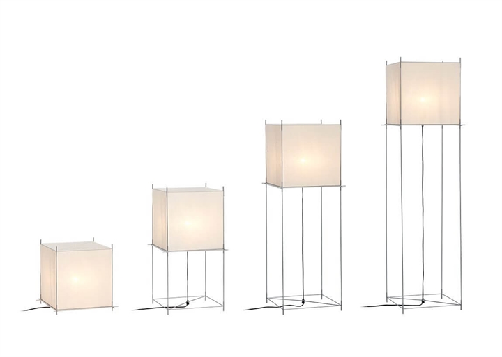 Lotek is verkrijgbaar als vloerlamp in XS, classic en XL met zwart frame of stalen frame.