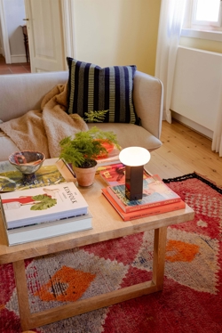 De batterijlamp Low Portable is een compacte draagbare tafellamp die is ontworpen om overal, zowel binnen als buiten, warm en sfeervol licht met je mee te nemen. De lamp combineert een minimalistische Scandinavische uitstraling met een praktische traploos dimbare geïntegreerde LED-lichtbron, zodat je in elke situatie eenvoudig gezellige verlichting kunt creëren.