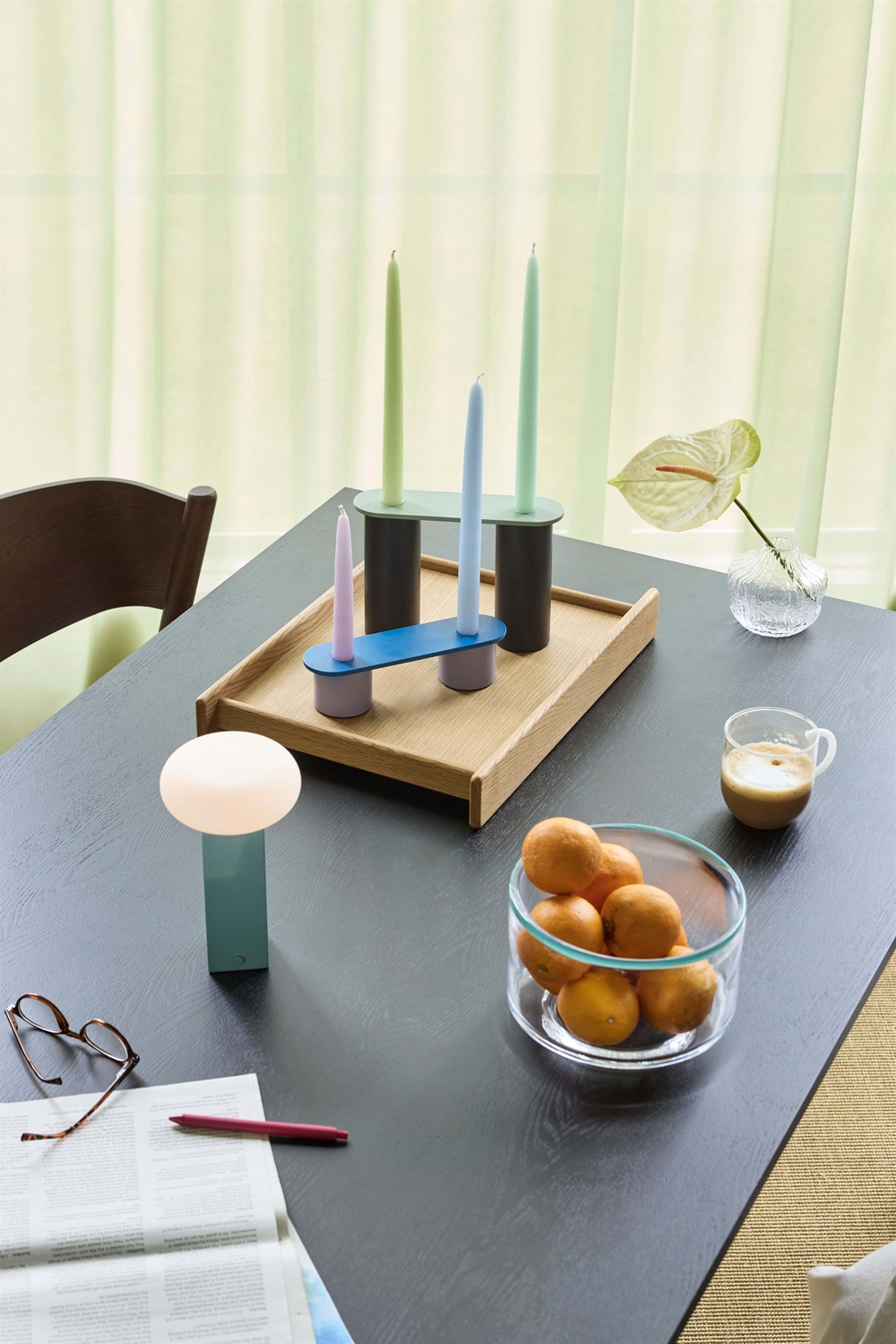 De batterijlamp Low Portable is een compacte draagbare tafellamp die is ontworpen om overal warm, sfeervol licht met je mee te nemen, zowel binnen als buiten. De lamp combineert een minimalistische Scandinavische uitstraling met een praktische, traploos dimbare geïntegreerde LED-lichtbron, zodat je in elke situatie eenvoudig gezellige verlichting creëert.