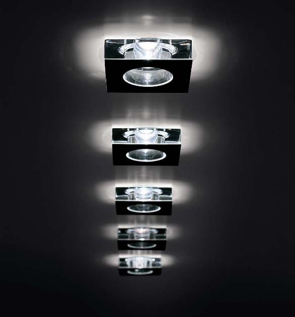 Lui Inbouwspot geeft een uiterst aangenaam en mooi licht, en is gemaakt van geperst helder kristal, en heeft een armatuur van gepolijst roestvrij staal.